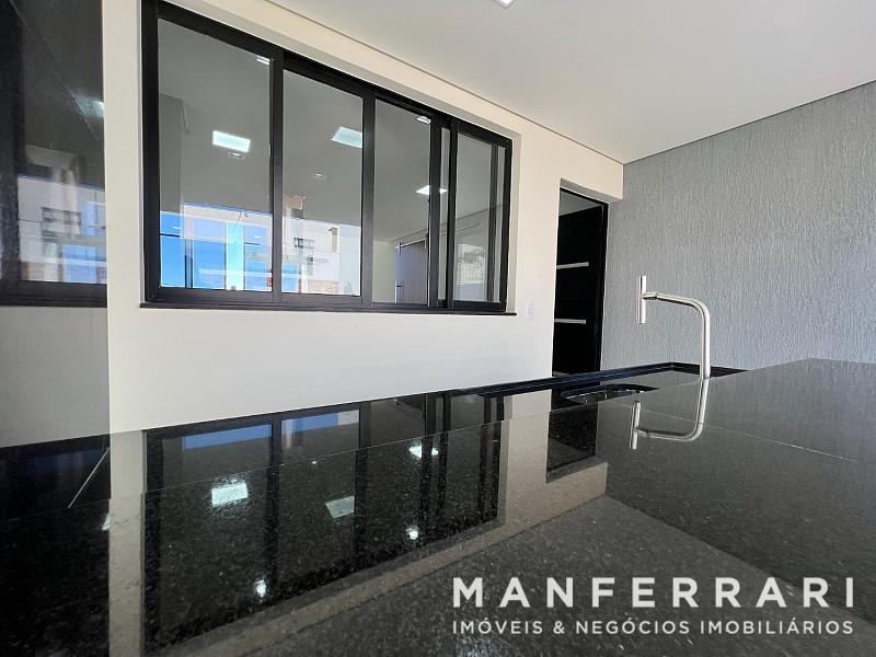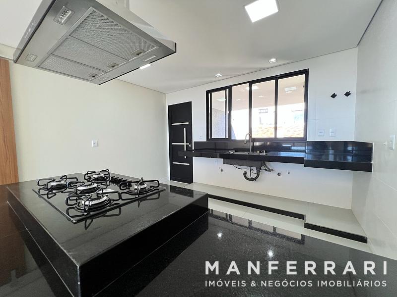 • Salas integradas de estar e jantar, com varanda e lavabo